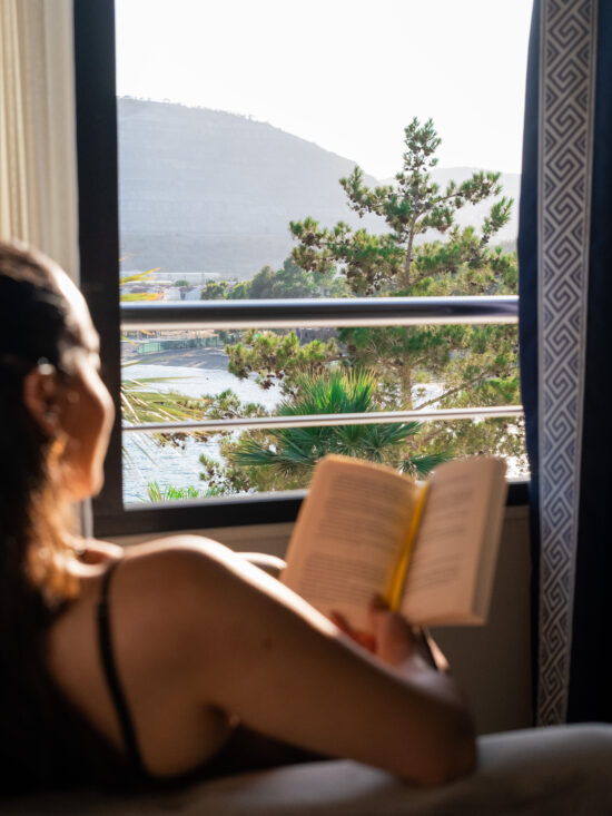 Akdeniz’in dingin ruhunu modern tasarım anlayışıyla buluşturan bu özel oda, misafirlerine konforlu ve huzurlu bir konaklama deneyimi sunmak üzere özenle tasarlandı. Doğal tonların hâkim olduğu iç mekân, zarif detaylarla tamamlanarak sade ama etkileyici bir atmosfer yaratıyor. Gün ışığını içeri davet eden geniş pencere ve yumuşak aydınlatma çözümleri sayesinde oda, günün her saatinde ferah ve davetkâr bir his uyandırıyor.